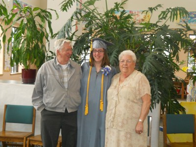 Well here is the picture that I was talking about. This is me and my grandpa and grandma Cole. My grandpa is laughing. I was so excited that they came up. Once again this is last year May, 27th 2011.
