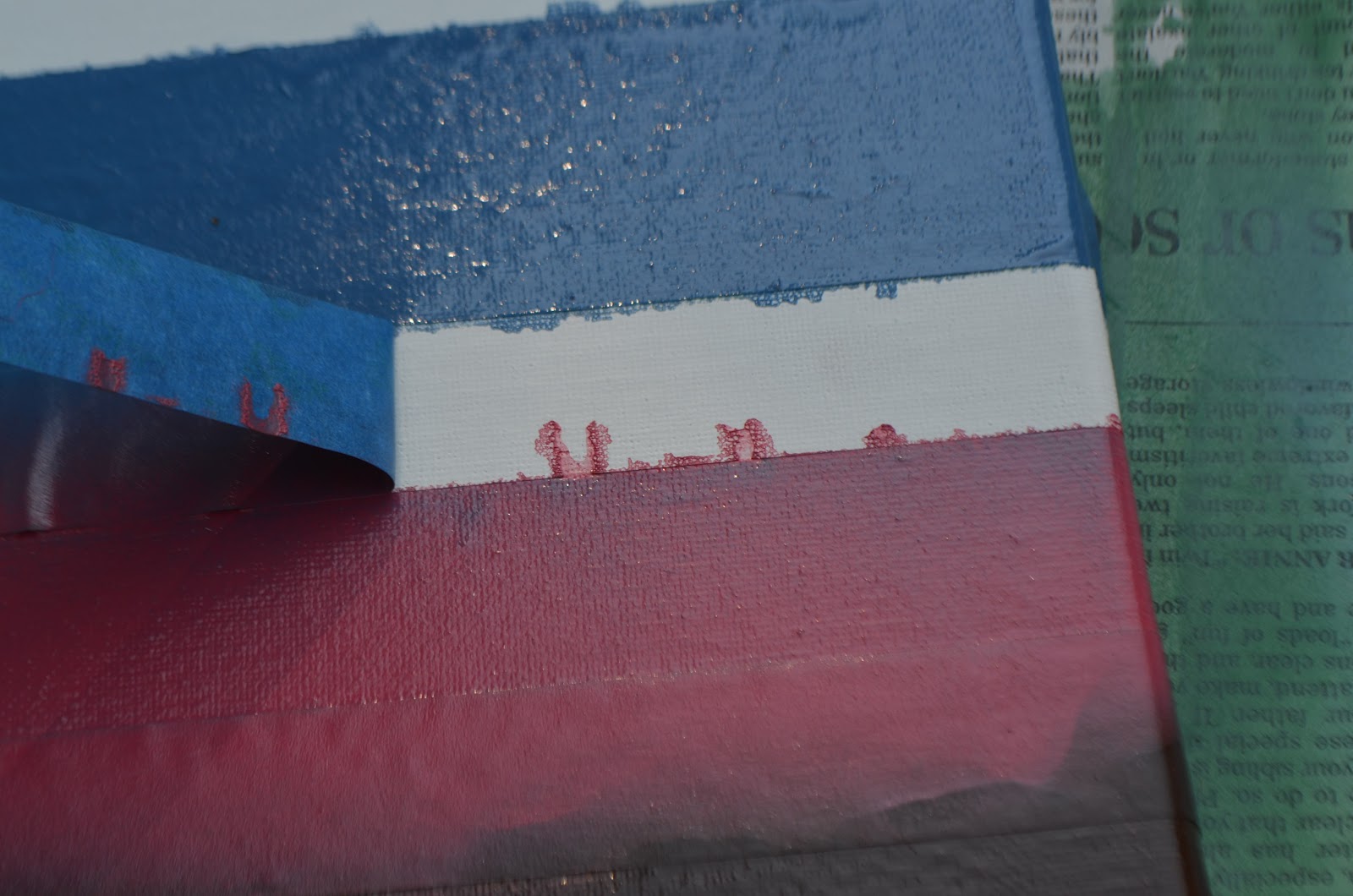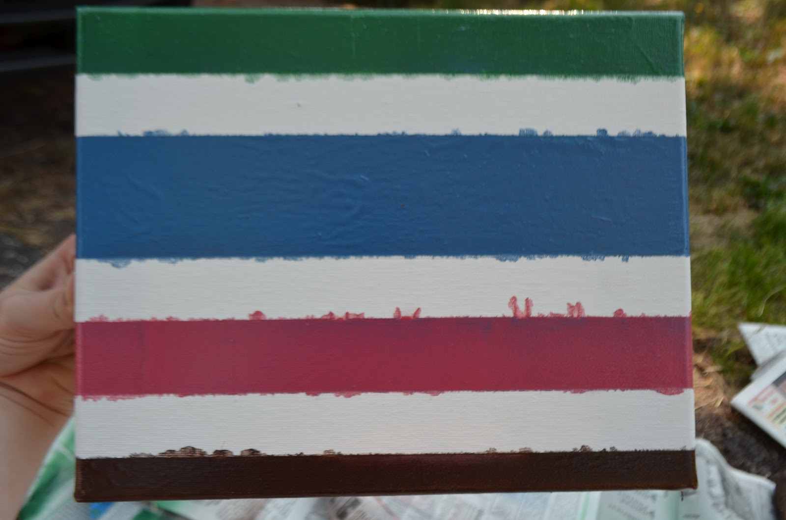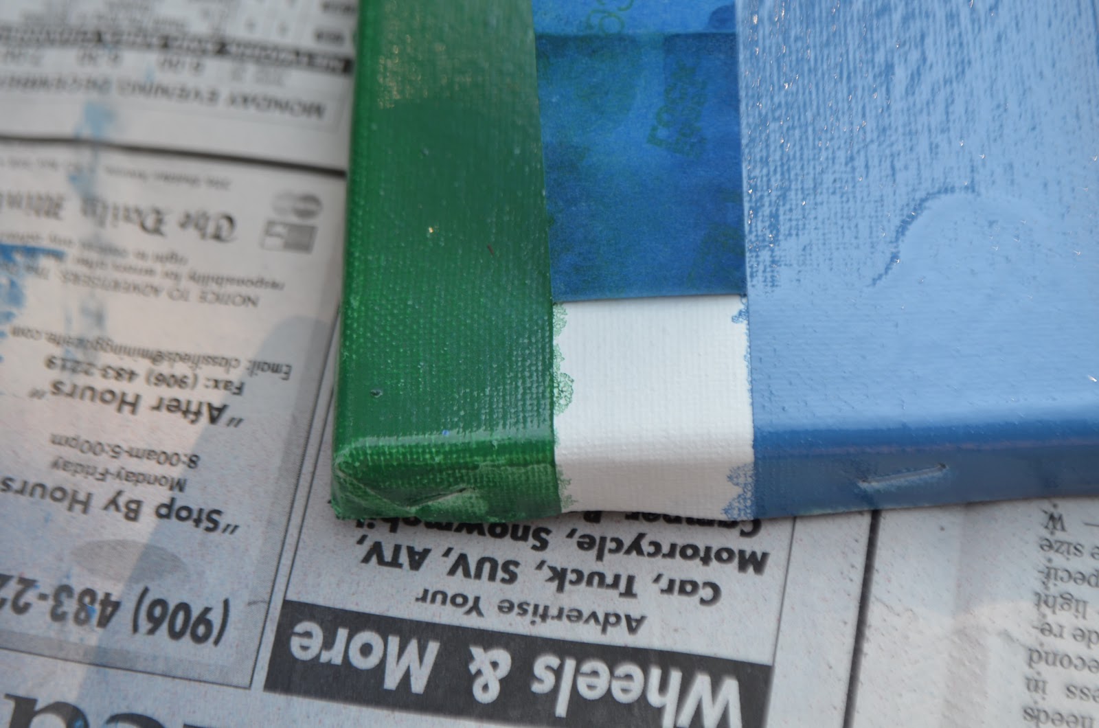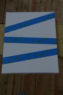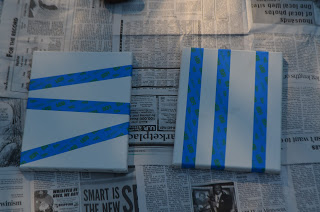 I used the striped one for the tutorial. Anyways, place your canvases down on some newspaper or a surface that you don’t mind getting paint on.