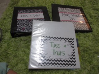 I have a different folder for the days of the week. One for Mon & Wed classes, Mon, Wed, Fri classes, and Tues & Thurs Classes