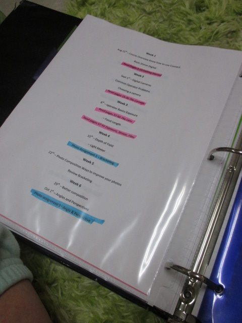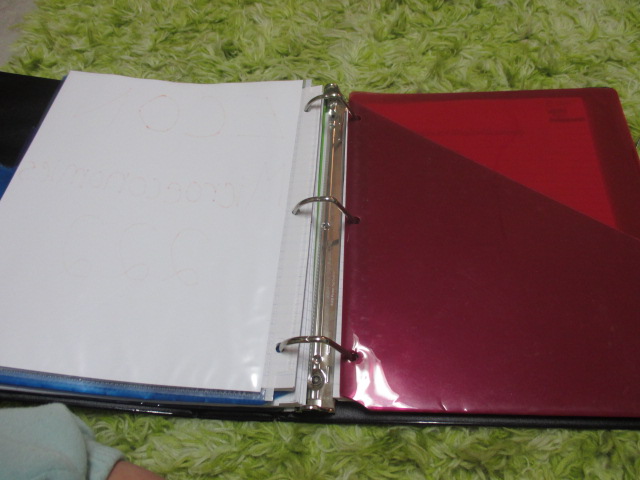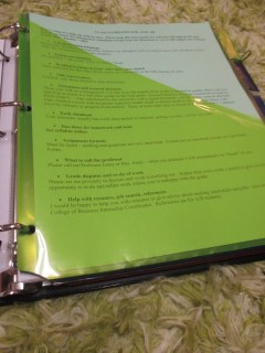 I have clear plastic sleeves for things that I need to look at everyday. This one here is just this classes section.